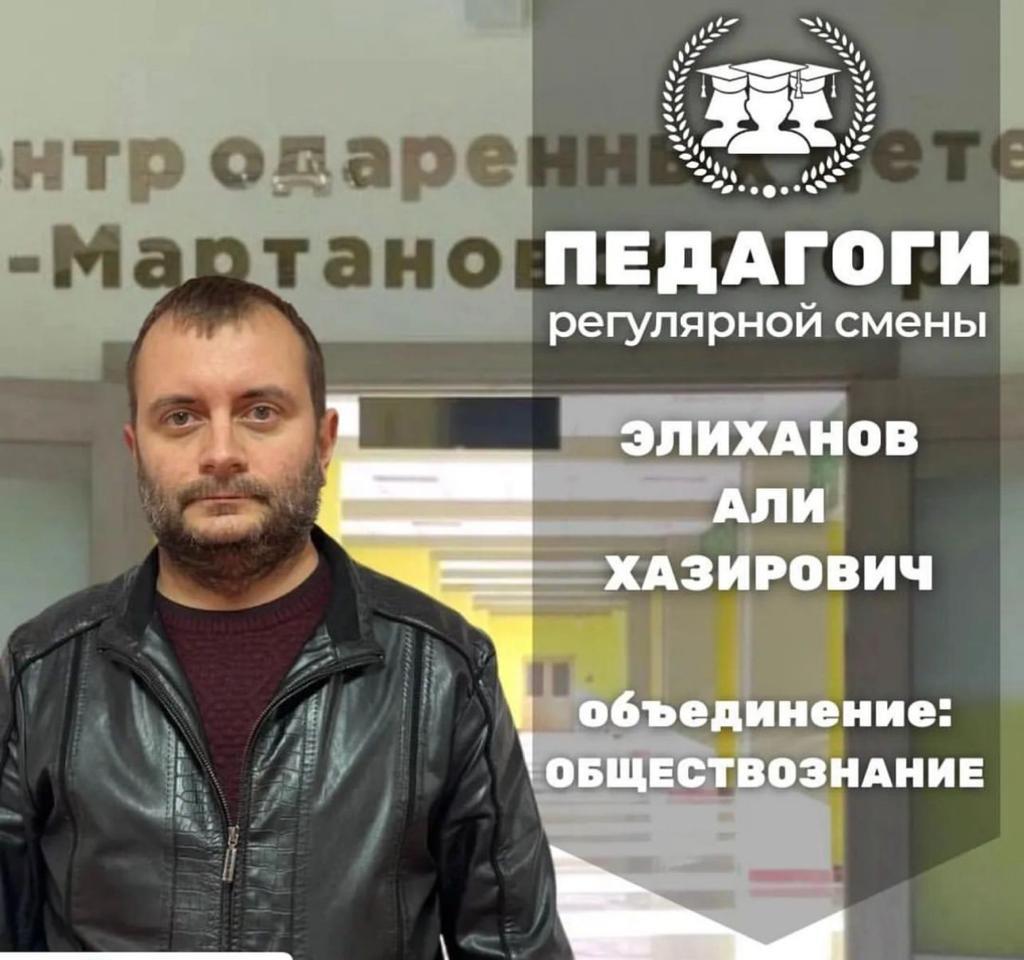 08.12.2022«Вся гордость учителя в учениках, в росте посеянных им семян» Д.И. Менделеев. И вновь рубрика «Педагоги регулярной смены». Сегодня мы познакомим вас с педагогом Центра одаренных детей, руководителем объединения «Обществознание» Элихановым Али Хазировичем.Двадцать четыре года назад в СШ №1 г. Урус-Мартан пришел молодой, энергичный, светлый паренек, который стал преподавать историю и обществознание. Это был Элиханов Али Хазирович. Он сразу полюбился ученикам. Веселый, коммуникабельный, знающий, он завоевал сердца детей, сразу стал своим в учительском коллективе. Мужчины - редкое явление в образовательных учреждениях, и казалось, что и этот молодой человек здесь не задержится: он обладал такими знаниями, которые могли бы пригодиться и в других, более респектабельных местах. Но Элиханову Али по душе была его работа. Он любит подрастающую смену, ему интересно наблюдать ее рост, помогать молодым людям выбрать нужную дорогу в жизни. Али Хазирович не только преподаватель- он друг детей. И это на протяжении двух с лишним десятков лет. Все так же интересны его уроки, так же общителен он и с детьми, и с коллегами. Счастливое сочетание профессионализма с достойными чертами характера дает прекрасные результаты: на протяжении многих лет его ученики получают высокие балы на ЕГЭ по обществознанию; команда «Умники», которой он руководит – постоянный член интеллектуального клуба «Интеллектуальный Кавказ»- занимает первые места в районных, Республиканских играх «Брейн-ринг», первое место в Республиканской игре «Что? Где? Когда?», первое место в Республиканской игре «Юный правовед», первое место в общероссийской игре «Южный ветер». Капитан команды в Российской олимпиаде «Сохрани Россию» прошел региональный этап. Не удивительно, что Элиханова Али отметило руководство ИРО во главе с Гангой Эльмурзаевой: теперь он- региональный тьютор. Успешная работа не мешает Али быть хорошим семьянином - в его семье растут дети, достойные отца.И вот теперь Али Хазирович - педагог дополнительного образования Центра одаренных детей. С его приходом большее количество детей сможет учиться и образовываться у прекрасного педагога.