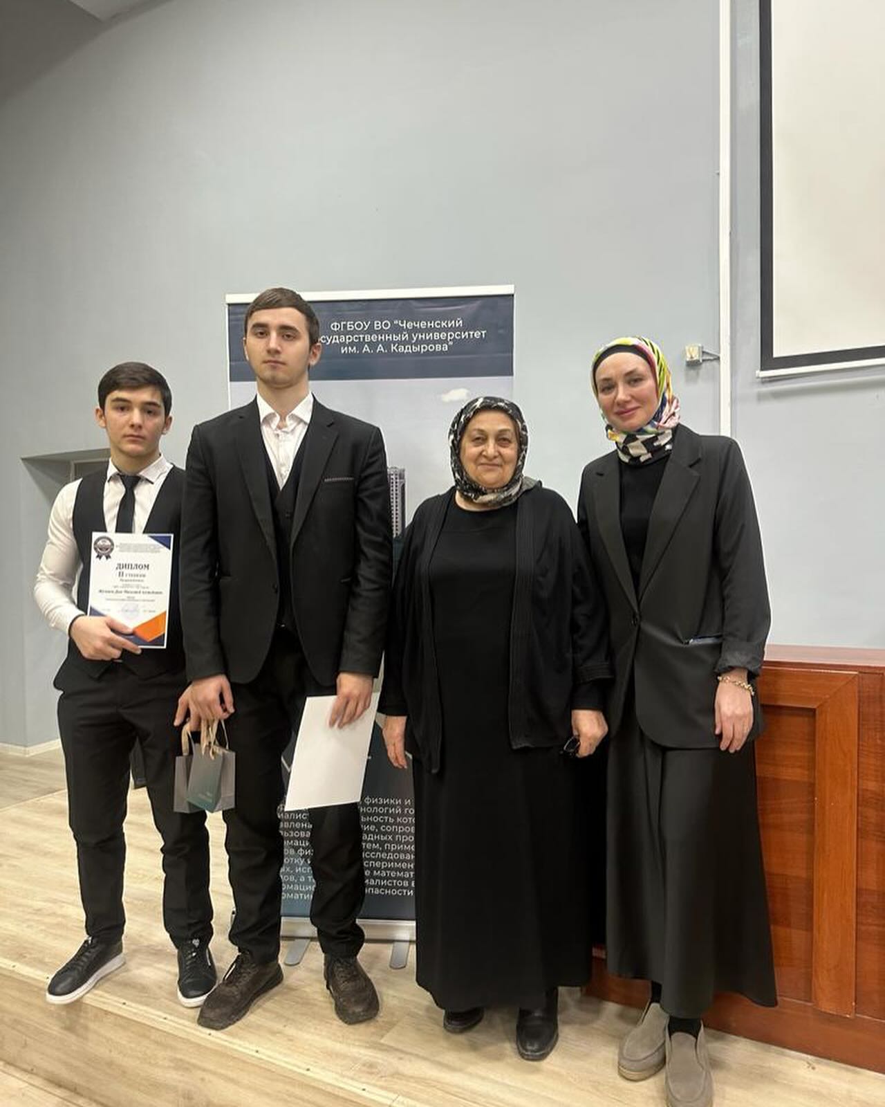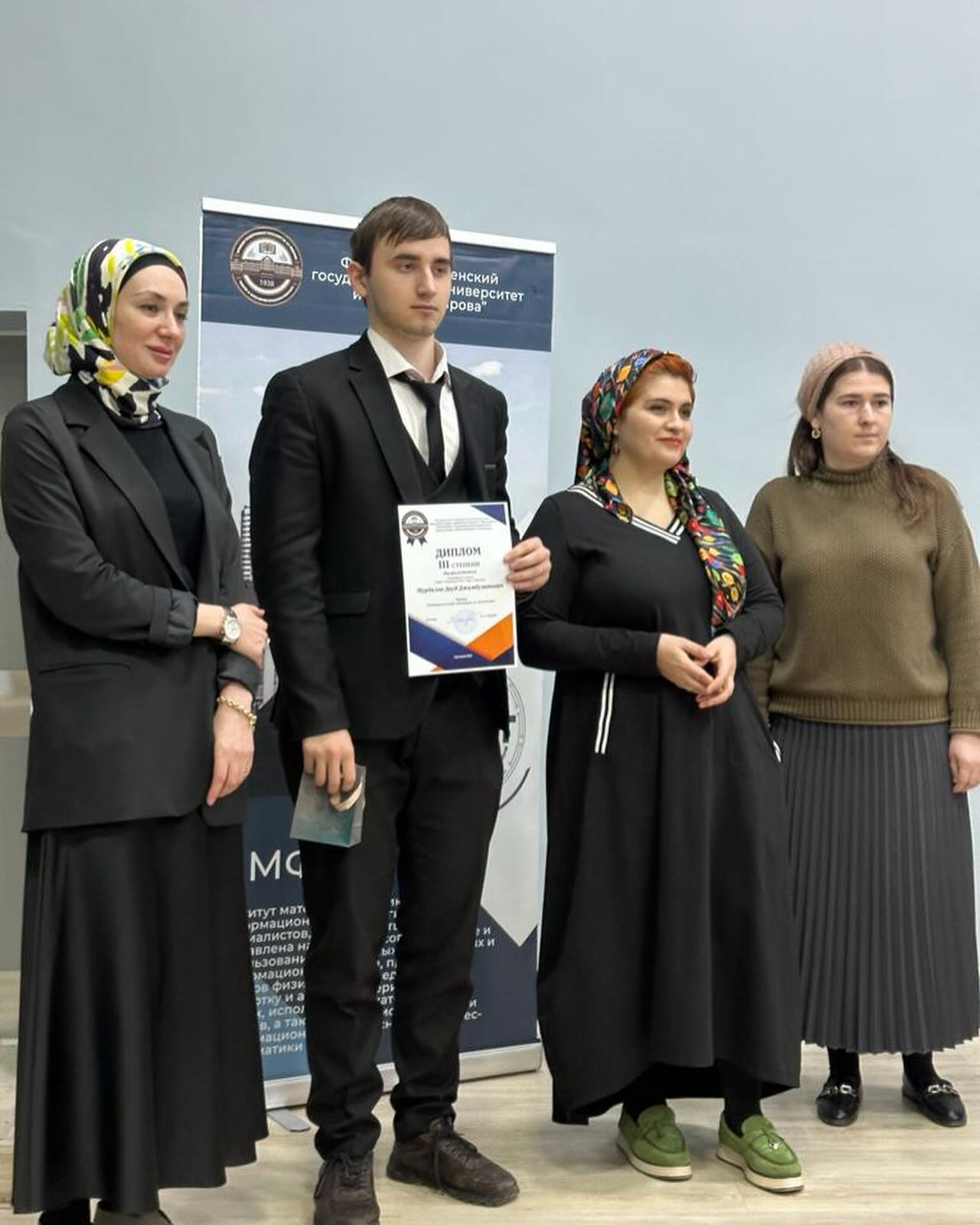 27.01.2024Сегодня, 27 января 2024 года, в ФГБОУ ВО «Чеченский государственный университет им.А-Х.Кадырова» в институте физики, математики и информационных технологий прошла церемония награждения победителей и призеров заключительного( университетского) этапа Университетской олимпиады 2023 среди обучающихся 11-х классов общеобразовательных организаций ЧР. В общей сложности в олимпиаде приняло участие около 3 тысяч обучающихся. По результатам все трех этапов (школьный, муниципальный и региональный) обучающиеся 11б класса гимназии стали призерами, завоевав:✨ Жукаев Дин-Магомед - 2 место✨ Мурдалов Дауд - 3 местоУчитель - Умархаджиева Саламат Сайд-АлиевнаМы желаем нашим ребятам 100 б на итоговой аттестации в формате ЕГЭ, осуществления всех их заветных мечт и не останавливаться на достигнутомДала т1аьхье беркате йойла!