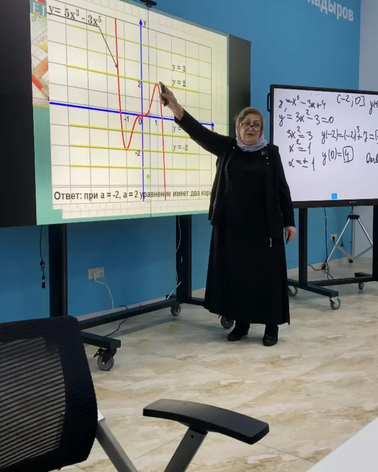 18.05.2024 Цель мероприятия - обсуждение профессиональных компетенций учителя математики в контексте цифровой образовательной среды и демонстрация практических навыков применения цифровых ресурсов при проведении интегрированных уроков.В рамках проведения мероприятия провела мастер-класса по теме «Применение производной к исследованию функций» Почётный работник общего образования РФ, Заслуженный учительЧеченской Республики, региональный методист, победитель региональногоСеверо-Кавказского конкурса «Мастера интерактивных педагогических технологий - 2016», обладатель президентского гранта «Лучший учитель» РФ и ЧР, учитель математики гимназии Умархаджиева Саламат Сайдалиевна с обучающимся 11-х классов гимназии.В конце семинара благодарственным письмом ректора ЧГПУ И.Б.Байханова были награждены директор гимназии Накаева Р.Б. за плодотворное сотрудничество, а также учитель математики гимназии Умархаджиева С.С-А. В работе семинара приняли участие молодые учителя математики, региональные методисты Чеченской Республики, студенты и магистры ЧГПУ.Дата и время проведения семинара: 18 мая 2024г. с 10:00 до 13:00Место проведения: г. Грозный, ул. Субры Кишиевой, 33, к1, Чеченский государственный педагогический университет, Технопарк универсальных педагогических компетенций ЧГПУ.