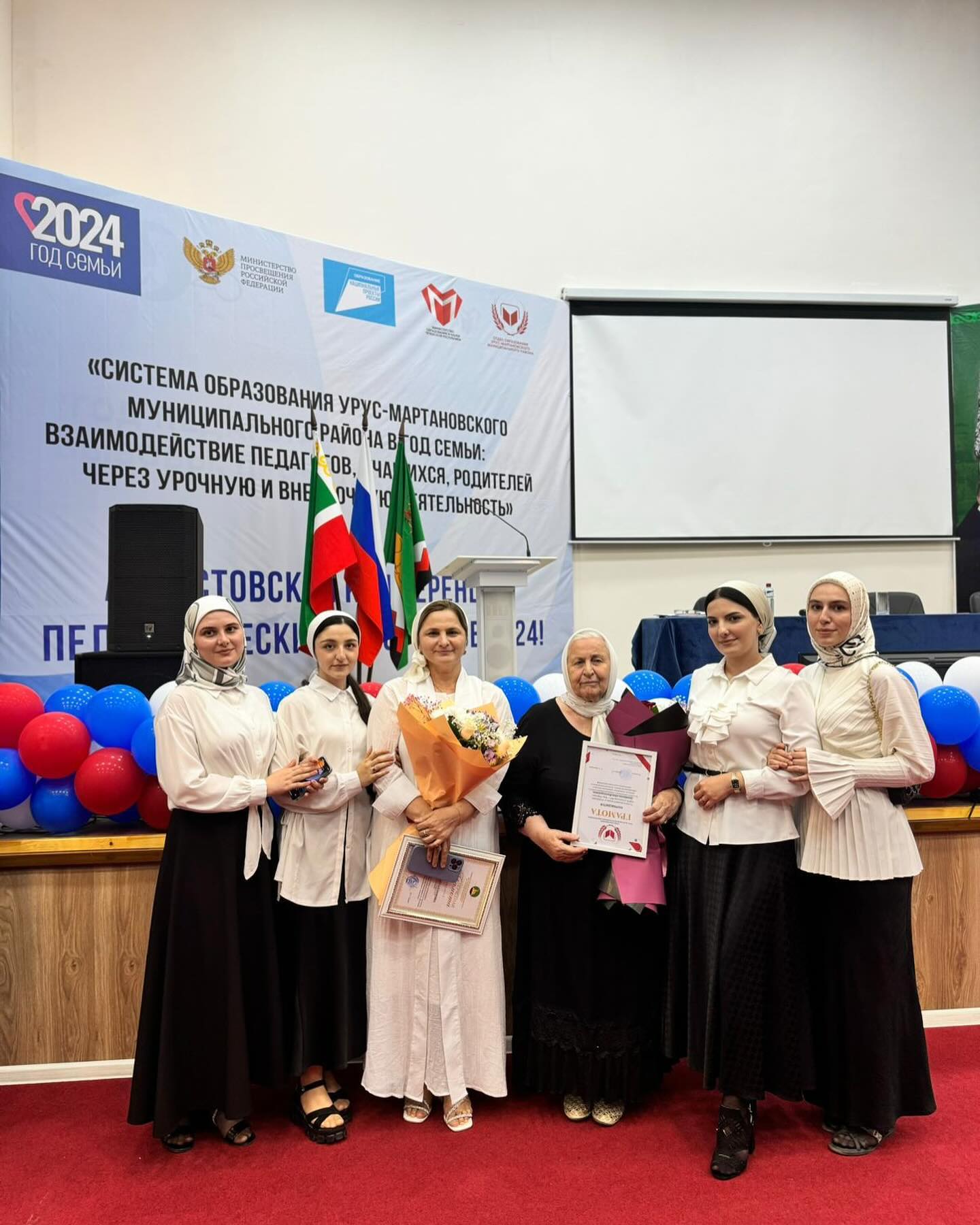 30.08.2024Приняли участие школе в ежегодной августовской конференции работников системы образования Урус-Мартановского муниципального района с участием представителей общеобразовательных организаций и учреждений дополнительного образования муниципалитета.💫За значительные успехи в организации и совершенствования учебного и воспитательного процессов, плодотворный труд в системе образования почетной грамотой главы Урус-Мартановского муниципального района @za_kra_shamil450 Куцаева Шамиля Ахмедовича награждена директор гимназии Накаева Р.Б.💫За многолетний труд в образовании, вклад в развитие подрастающего поколения почетной грамотой отдела образования Урус-Мартановского муниципального района награждена учитель русского языка и литературы Джамбекова А.Ж.Дала т1аьхье беркате йойла
