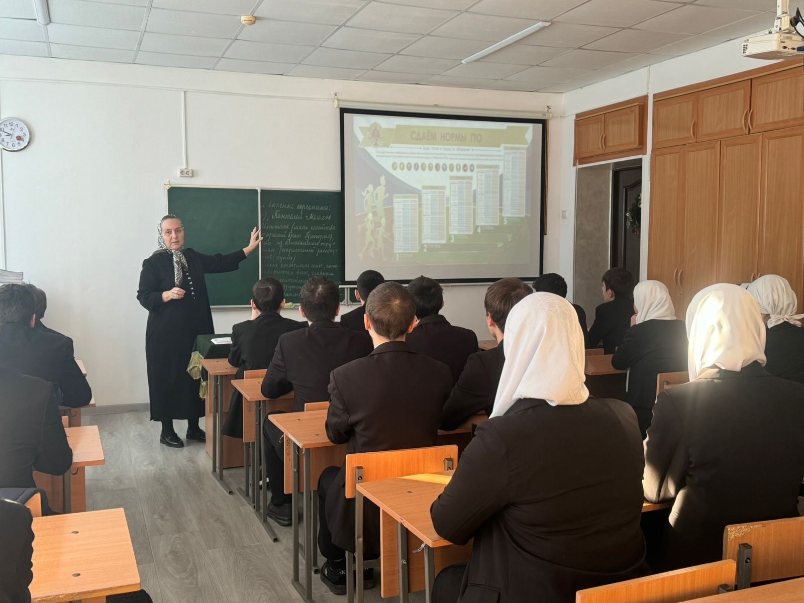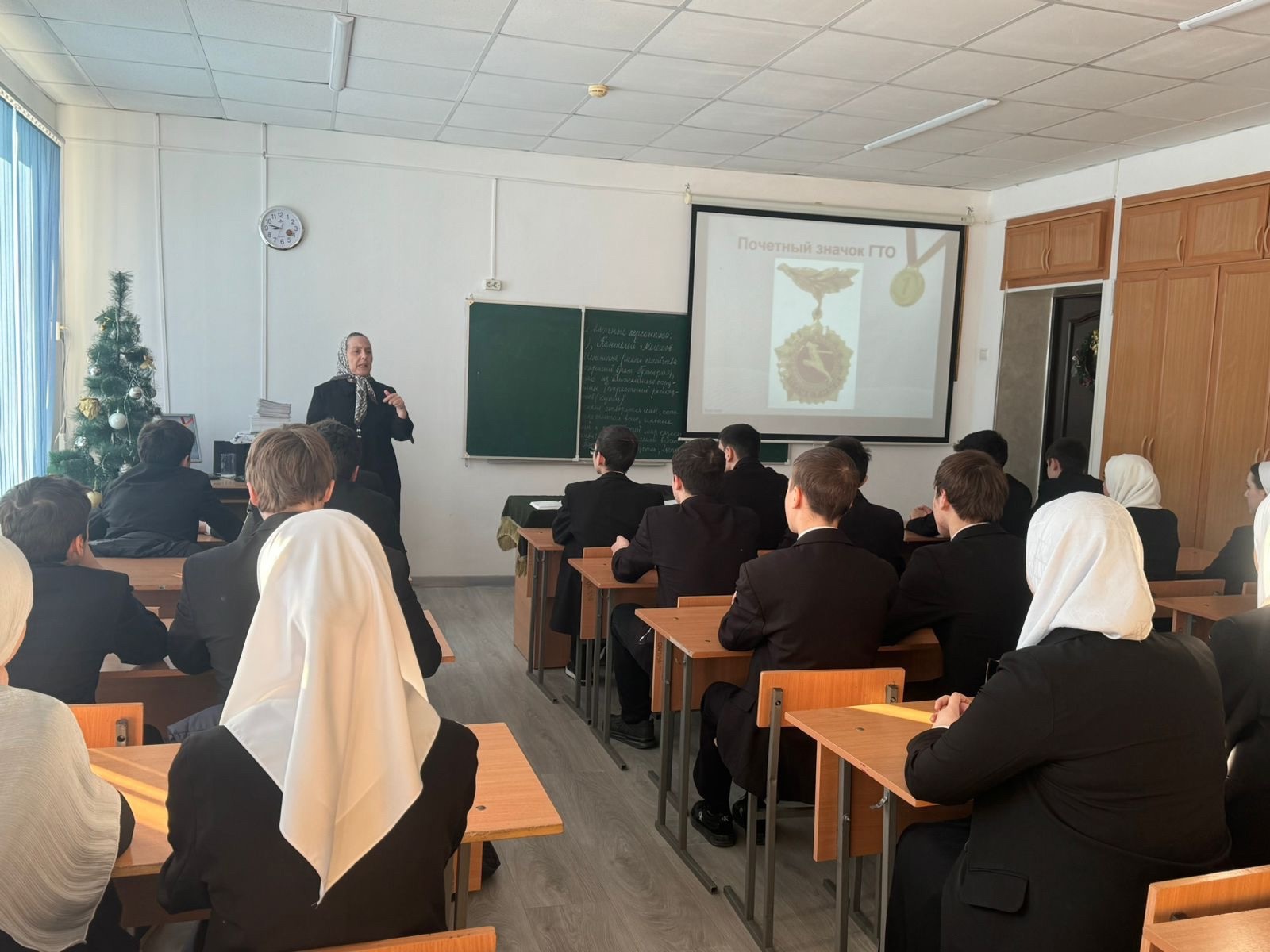 20.12.2024В МБОУ «Гимназия 5 г.Урус-Мартан» прошла акция «Урок ГТО» В соответствии с планом мероприятий, направленных на пропаганду Всероссийского физкультурно-спортивного комплекса «Готов к труду и обороне» 20 декабря 2024 года в нашей гимназии прошла акция «Урок ГТО». Цель акции – мотивация детей и подростков к физической активности и приобщению к здоровому образу жизни, систематическим занятиям физической культурой и спортом, популяризация Всероссийского физкультурно-спортивного комплекса «Готов к труду и обороне». Учитель русского языка и литературы Дашаева И.Ш. познакомила учеников с историей ГТО. В ходе мероприятия ребята познакомились с презентацией по истории, становлению и развитию комплекса ГТО в нашей стране. Они узнали, что комплекс «ГТО» предназначен для повышения уровня физической подготовленности, самосовершенствования и поддержания здорового образа жизни. В заключение были сделаны выводы, для чего нужно стремиться молодежи 21 века к выполнению нормативов ГТО, к получению знаков отличия? Ответы получились разные: кто-то хочет достичь конкретного результата и проверить свою силу воли и настойчивость, кто-то привык быть всегда первым в учебе и спорте, кто-то заботится о своем здоровье. Но все ребята сошлись во мнении, что комплекс ГТО необходим нам, современным людям. Ведь только целеустремленные и физически подготовленные люди смогут добиться успеха!