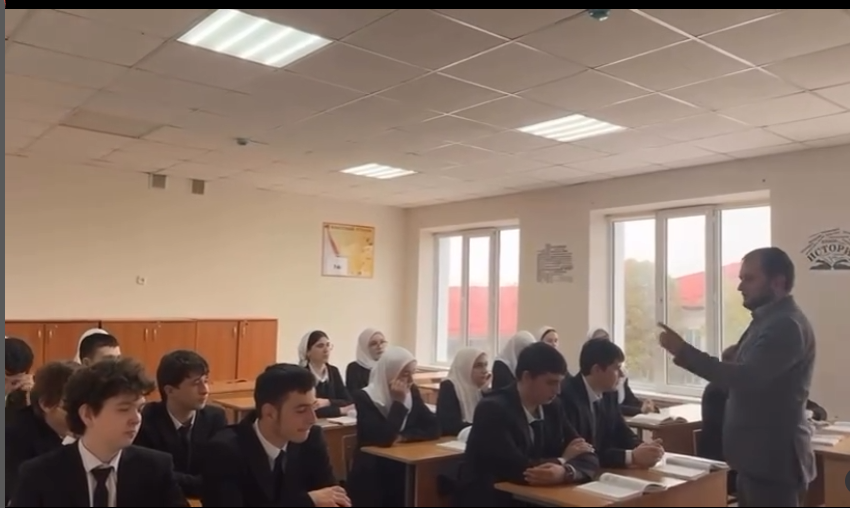 Преподаватель истории и обществознания гимназии Элиханов Али Хазирович провел урок, посвященный 80-летию победы в Великой Отечественной войне.