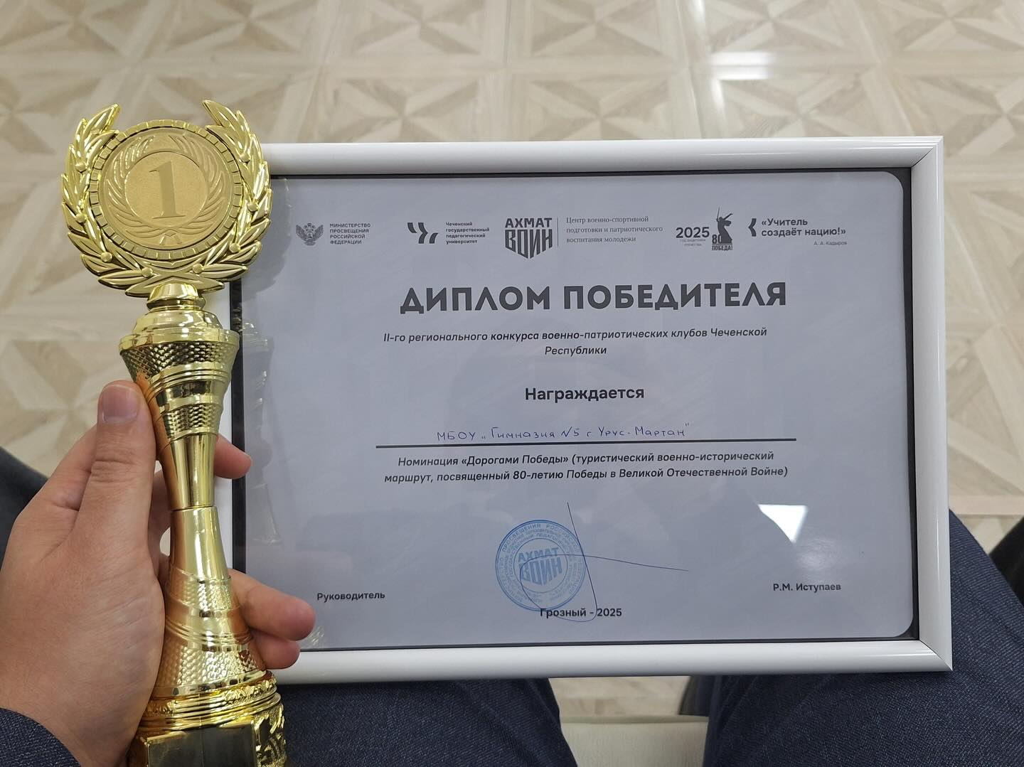Друзья, сегодняшний день был ознаменован еще одной победой гимназии на региональном конкурсе военно-патриотических клубов Чеченской республики.Дала т1аьхье беркате йойла!